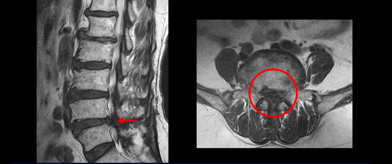이분은 허리도 아프지만 왼쪽 엉덩이와 다리가 너무 심하게 저리고 아팠는데 역시나 왼쪽 신경 가지가 빠져나가는 구멍이 막혀 있어서 매우 어둡게 보입니다.