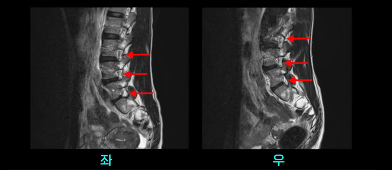 우선 이분의 MRI를 보고 먼저 설명을 드린 후 이런 환자분들의 통증의 원인은 무엇인지, 그리고 치료는 어떻게 해야 하는지 자세히 설명 드리겠습니다.